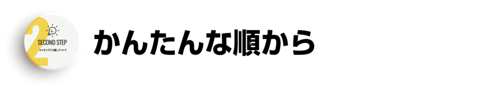 それらをライオンズ独自の構成で易から難に組み変えます。スモールステップを大事にしています。難問Aがあるとします。難問ばかりのあるテストの中にその問題があるのと、できる問題ばかりのあるテストの最後に一つだけ難問Aがあるのとどちらが正答率が高いでしょう。結果は驚くほどの違いになるのです。