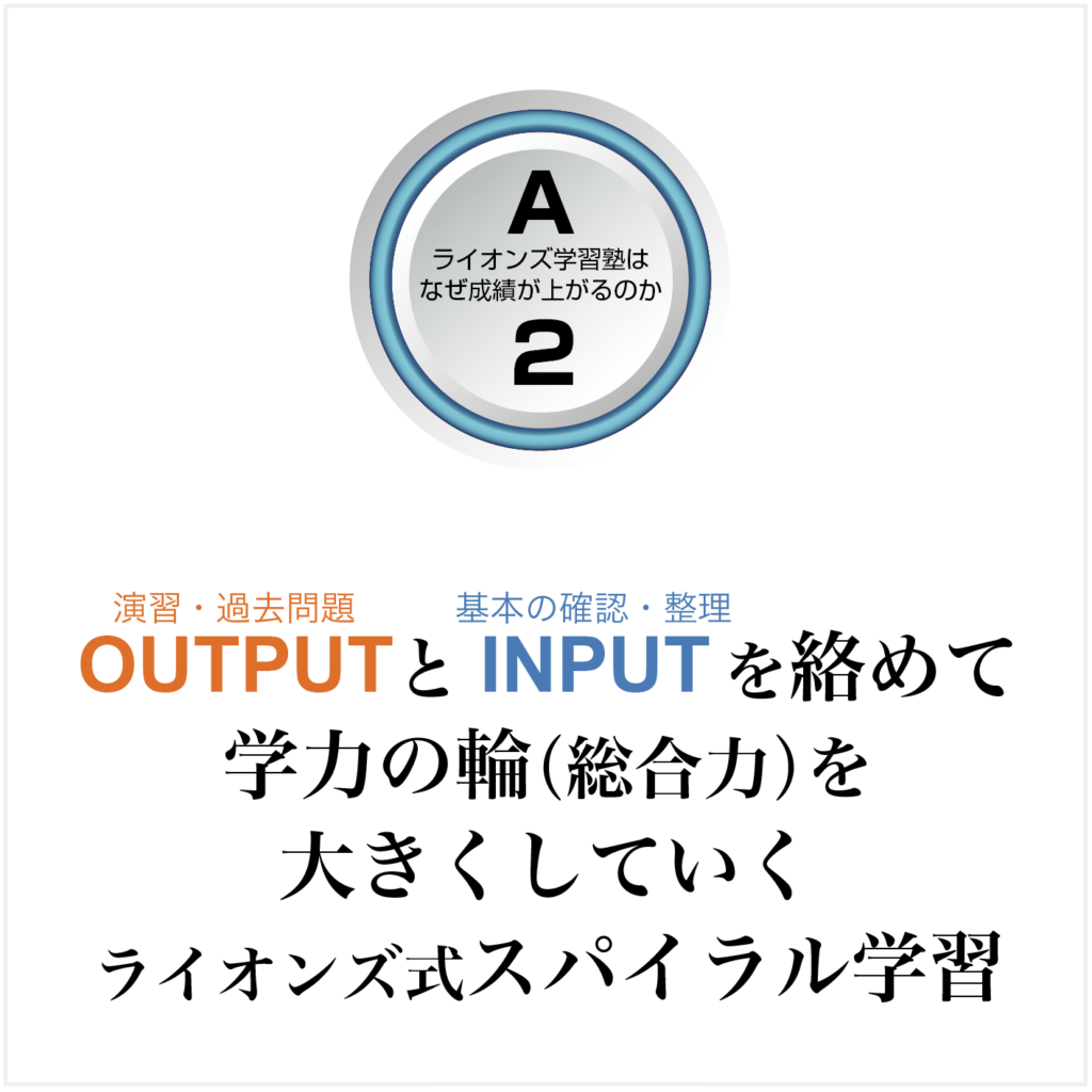 ライオンズ学習塾は、テスト・入試の仕上げ期にOUTPUTとINPUTのバランスを重視し、相乗的に絡めながら学力を高めていきます。